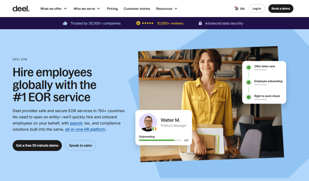 Deel has become one of the most recognisable names in the global EOR space through aggressive growth and heavy investment in technology and marketing. Their platform is genuinely impressive, offering slick interfaces and extensive self-service capabilities.